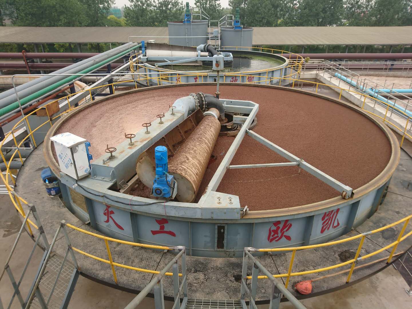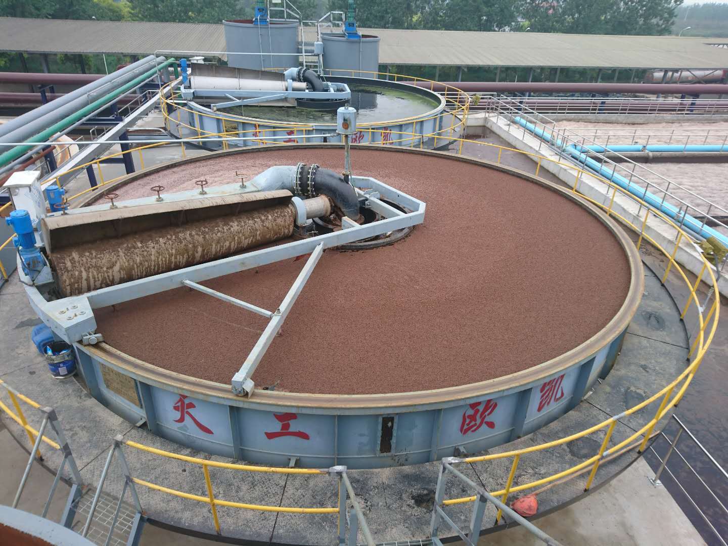 淺層氣浮機由氣浮機池體、布水機構、污泥斗機構、旋轉架機構、撇渣機構、水位調節(jié)機構、清水出水機構、驅動機構、電控箱、加藥系統(tǒng)、溶氣系統(tǒng)、微氣泡發(fā)生器、走道板、護欄。